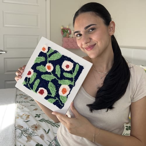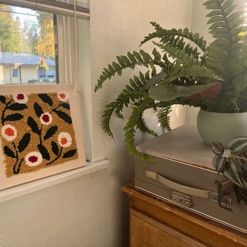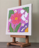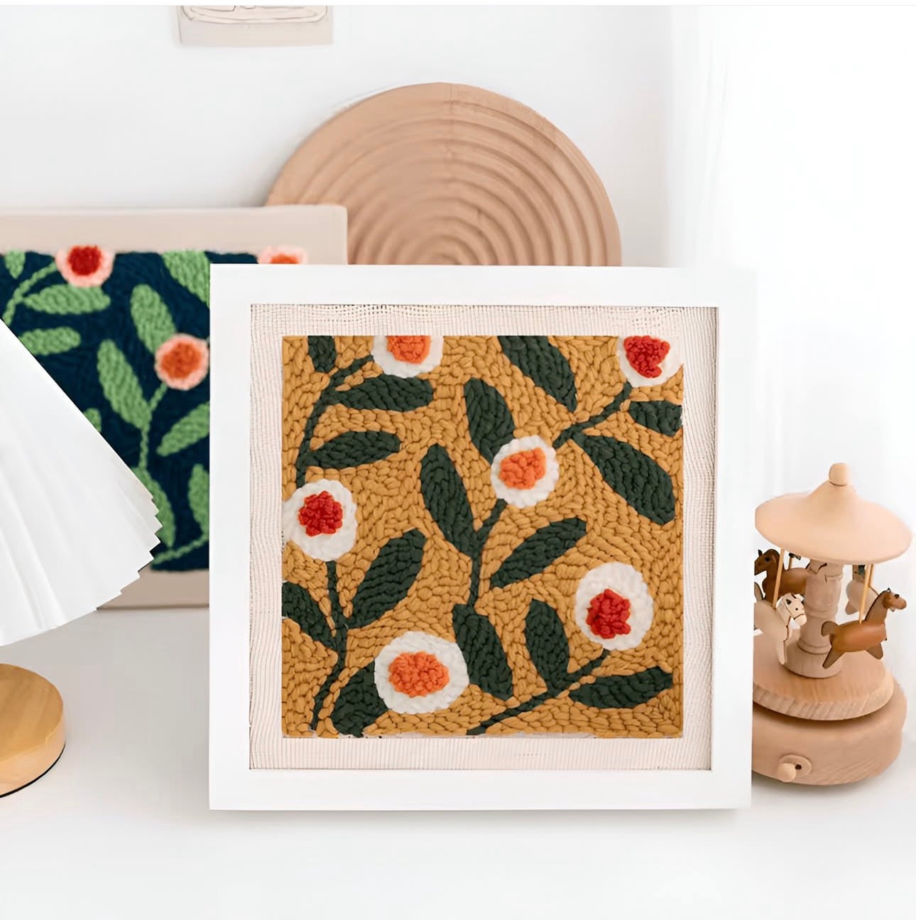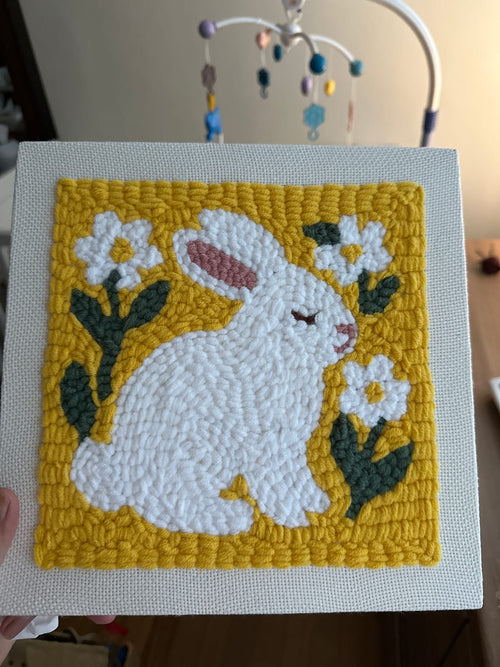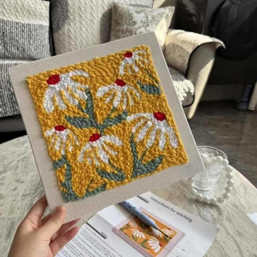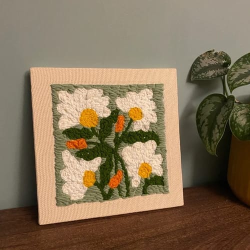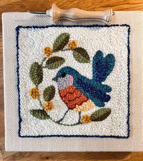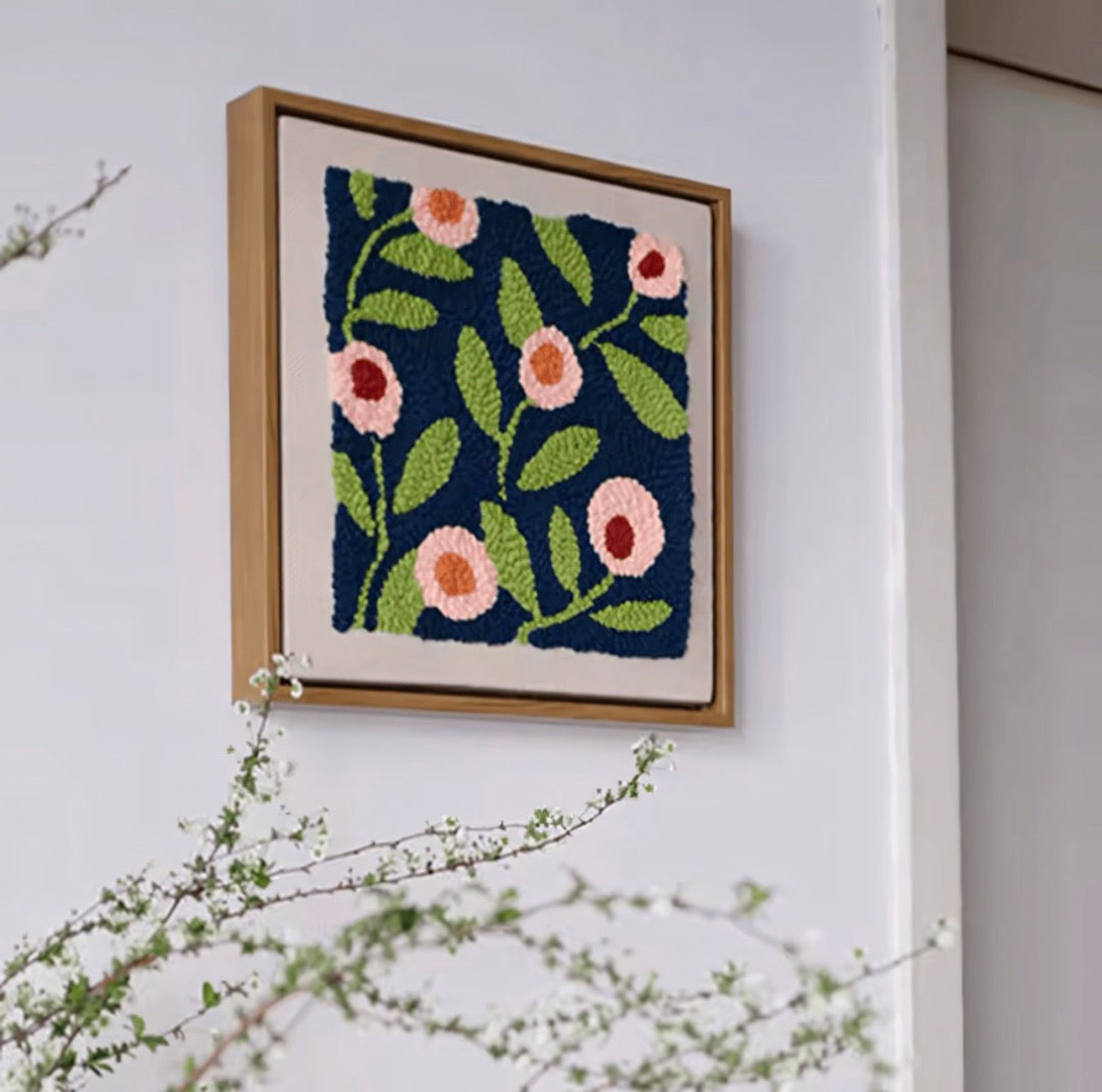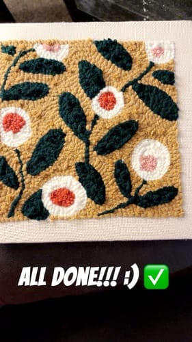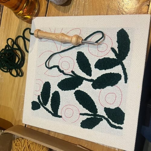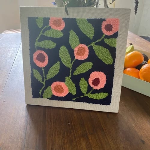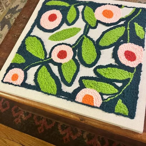 Punch needle ergonomique, toile déjà tendue et fils épais de belle tenue pour un rendu net et durable.